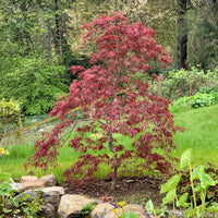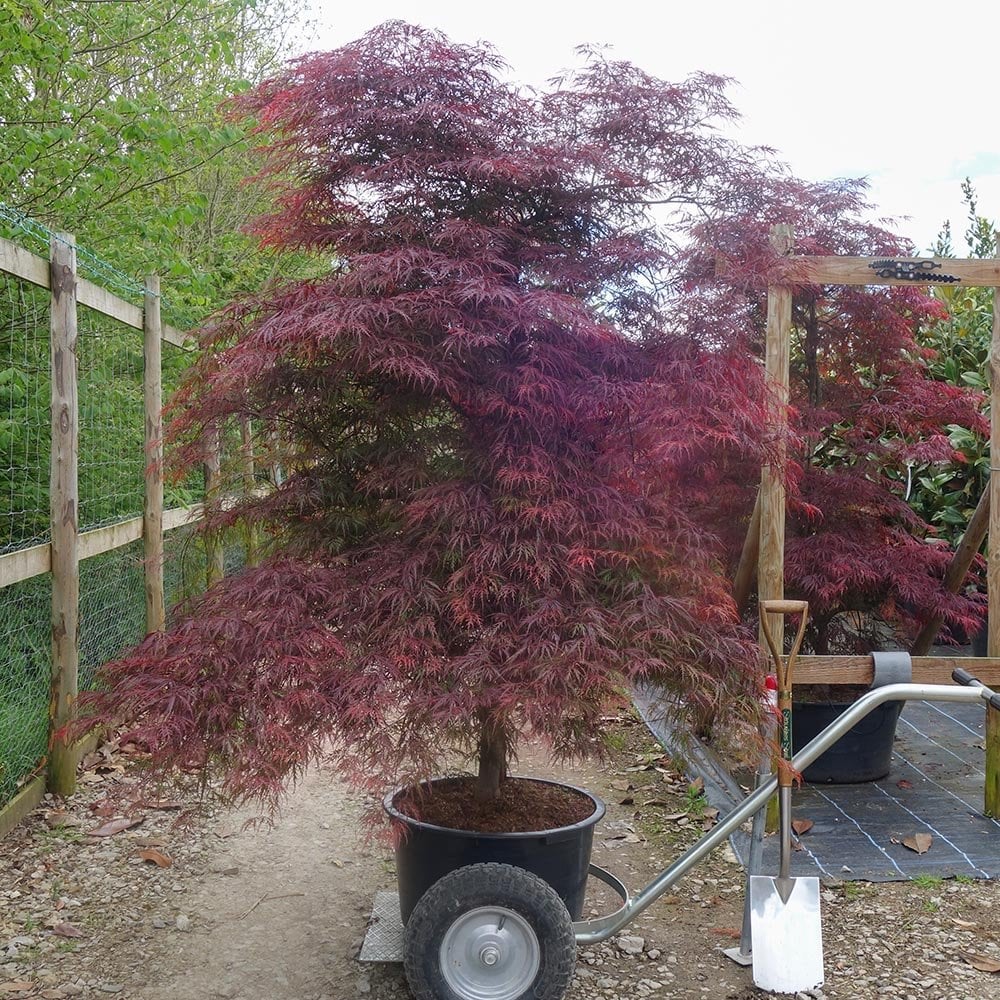Acer palmatum dissectum 'Garnet' is a very popular variety of Japanese Maple so we offer a range of sizes, from quality young plants, to stunning semi mature specimens that have been grown over many years into a lovely tiered shape.