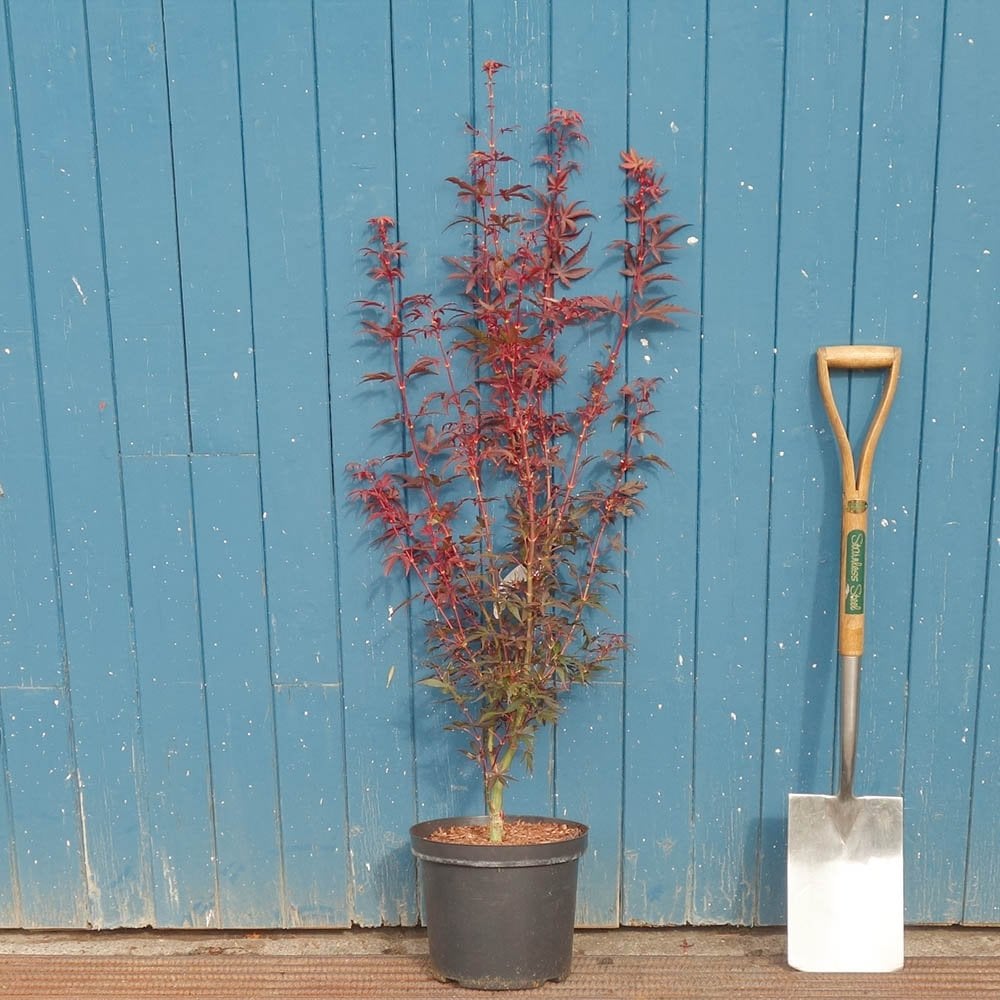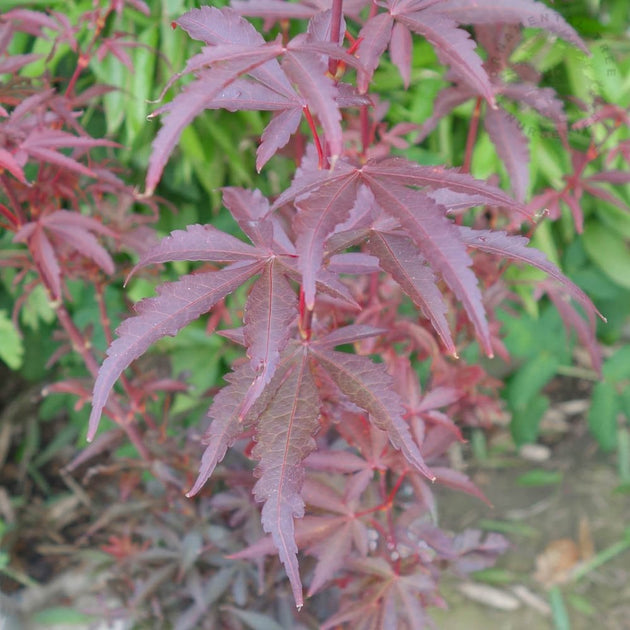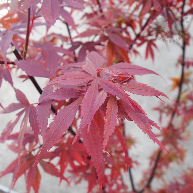 A fantastic dwarf Japanese Maple with an upright shape and rich burgundy leaves