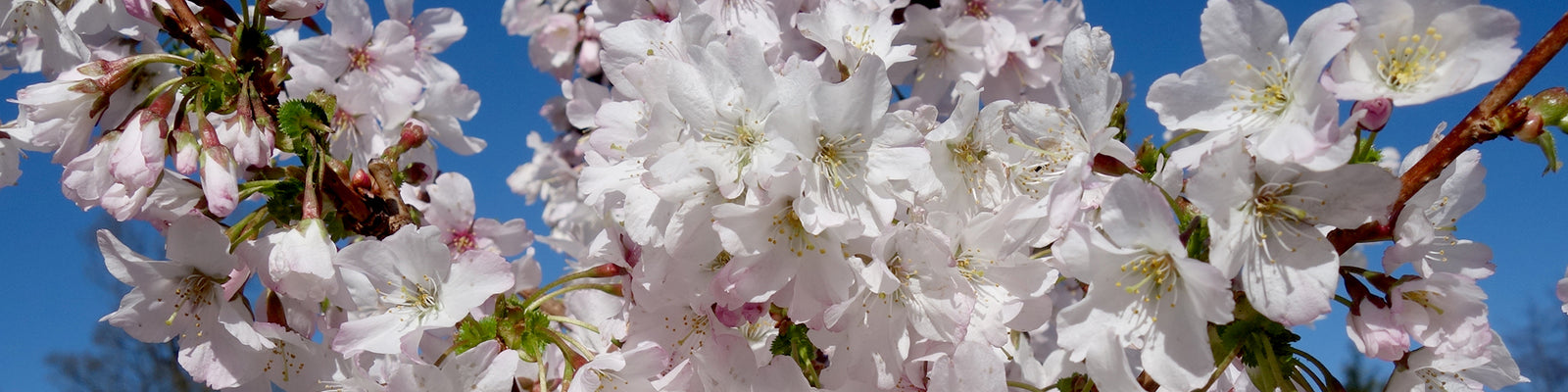 This section contains all our Cherry Blossom trees with white flowers, ranging from pure white blossom to those tinged with pink. Choose between small flowers that create a cloud of white blossom, impressive large flowers that make a statement and fragrant blooms that smell as wonderful as they look.