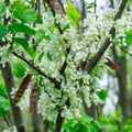 Cercis chinensis 'Shirobana' is an unusual, white-flowering Chinese Redbud tree that grows its blooms on bare stems. The flowers are followed by heart-shaped green leaves which turn yellow in autumn. 'Shirobana' has an approx. height and spread of 3 x 3 metres in 20 years so is suitable for small gardens in within borders of larger gardens.