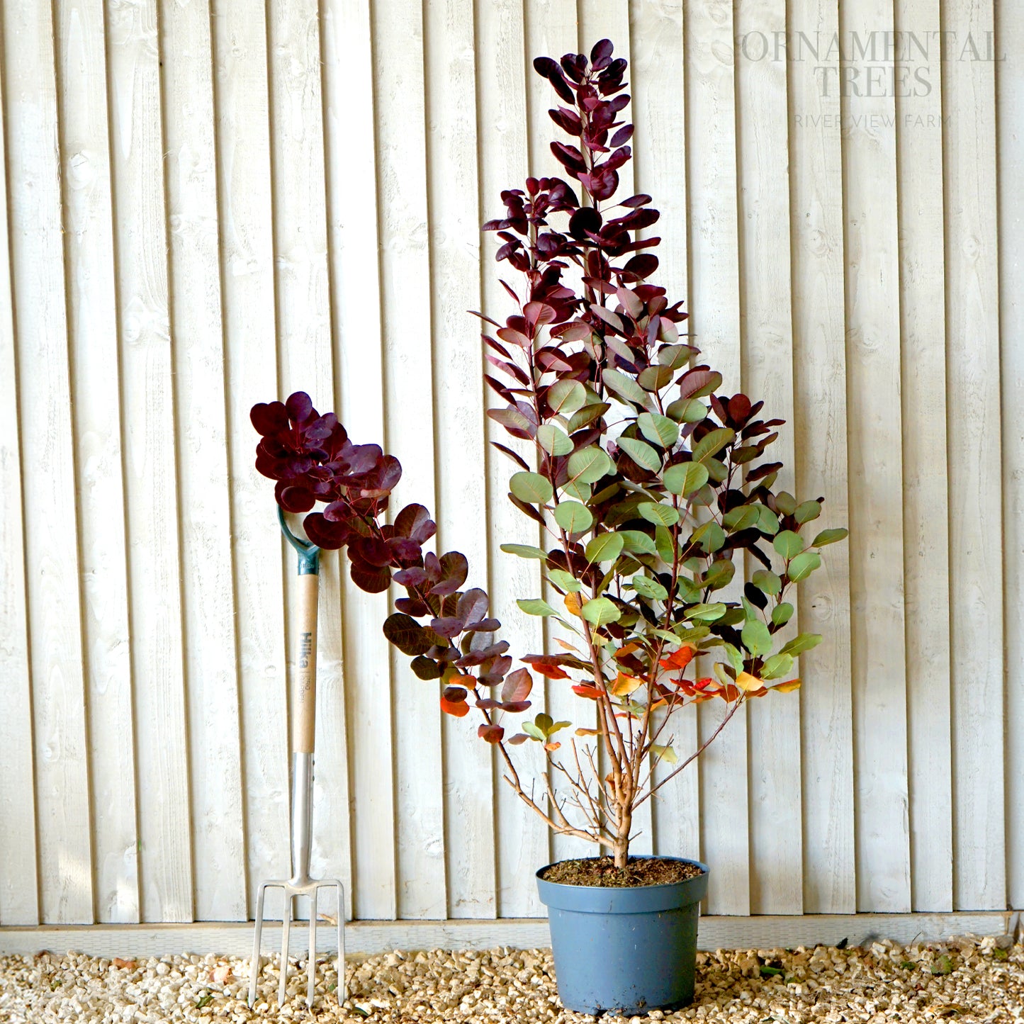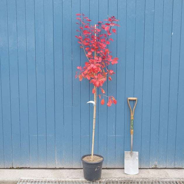 Cotinus 'Royal Purple' will naturally grow to a shrub of around 5 x 5 meters in size over 20 years, but we have grown it as a beautiful single stem tree with a lovely rounded habit. It requires a moist, well-drained soil in full or partial sun and it won’t fail to impress.