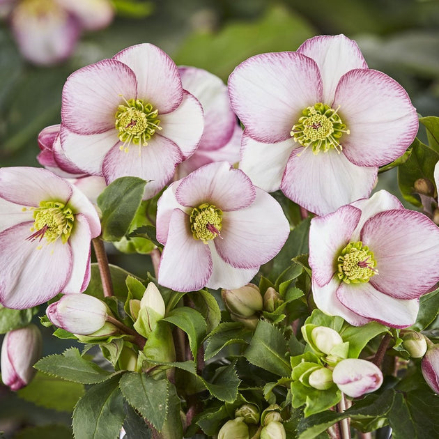 Helleborus HGC® Ice N Roses® Picotee is a vigorous evergreen perennial with an upright habit, reaching a height and spread of 60 cm. Its dark green, leathery foliage provides a striking contrast to the stunning...