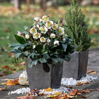 Helleborus HGC® SR Snow Dance® is a hardy evergreen perennial featuring a compact, clump-forming habit that typically reaches a height and spread of 40cm. Its dark green, leathery foliage showcases a subtle marbled pattern, adding...
