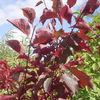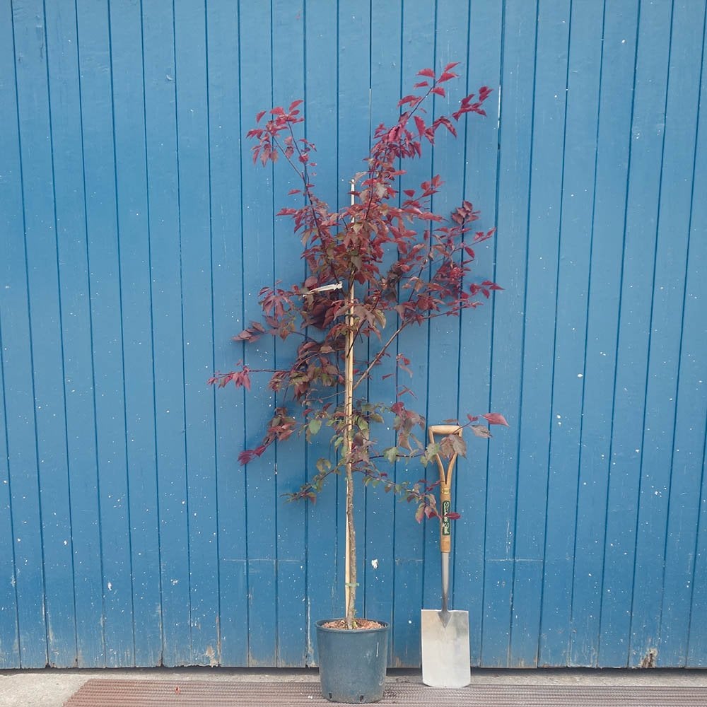 Prunus × blireana will grow to 4 x 3 metres height and spread in 20 years, making it a great feature in a small garden or part of a border in larger gardens. Plant in full sun for the best blossom display and leaf colour. A moist yet well-draining soil is ideal. Blireana Plum has received the RHS Award of Garden Merit.